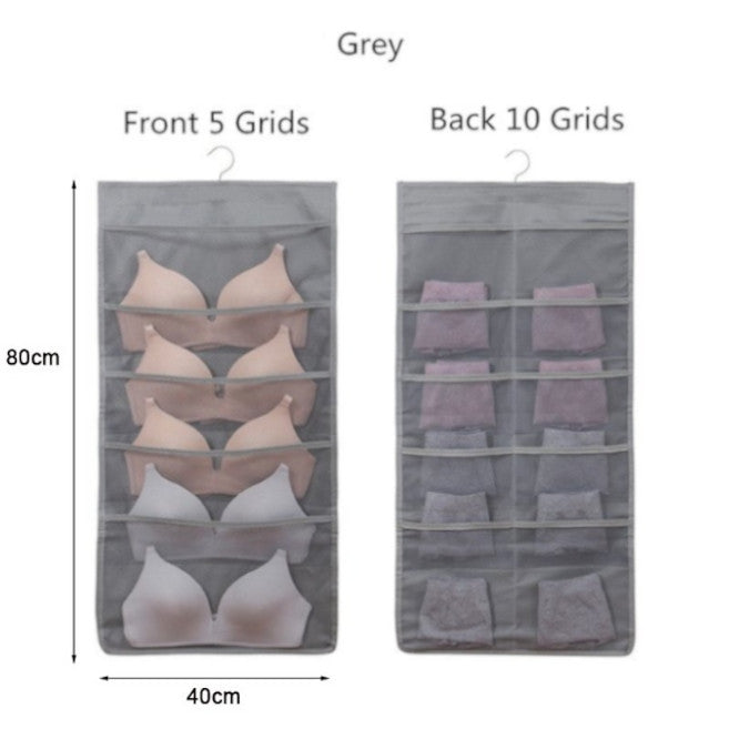 • Durable Double Sided Hanging Closet Organiser Ideal For Scarves Bra Lingerie Stocking Pantyhose Underwear / Socks Storage It Save Your Space And Make Your Life More Easily.