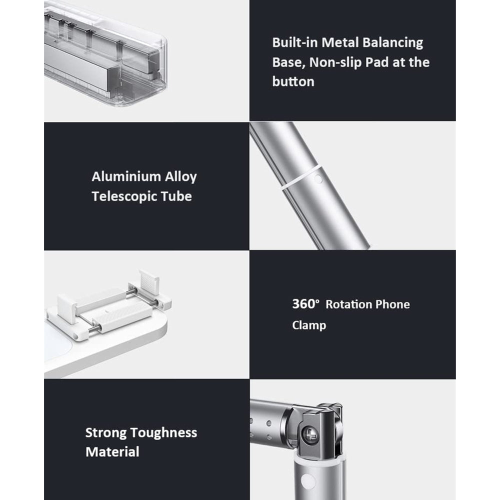 -Extendable Foldable: All-In-One Minimalist Design Selfie Stand It Can Foldable In Small Size Easy To Carry Out. 40-130Cm Stretching Heights 360 Free Angle Rotation The Height Can Be Freely Adjusted To Meet Your Demands. No Need To Assemble