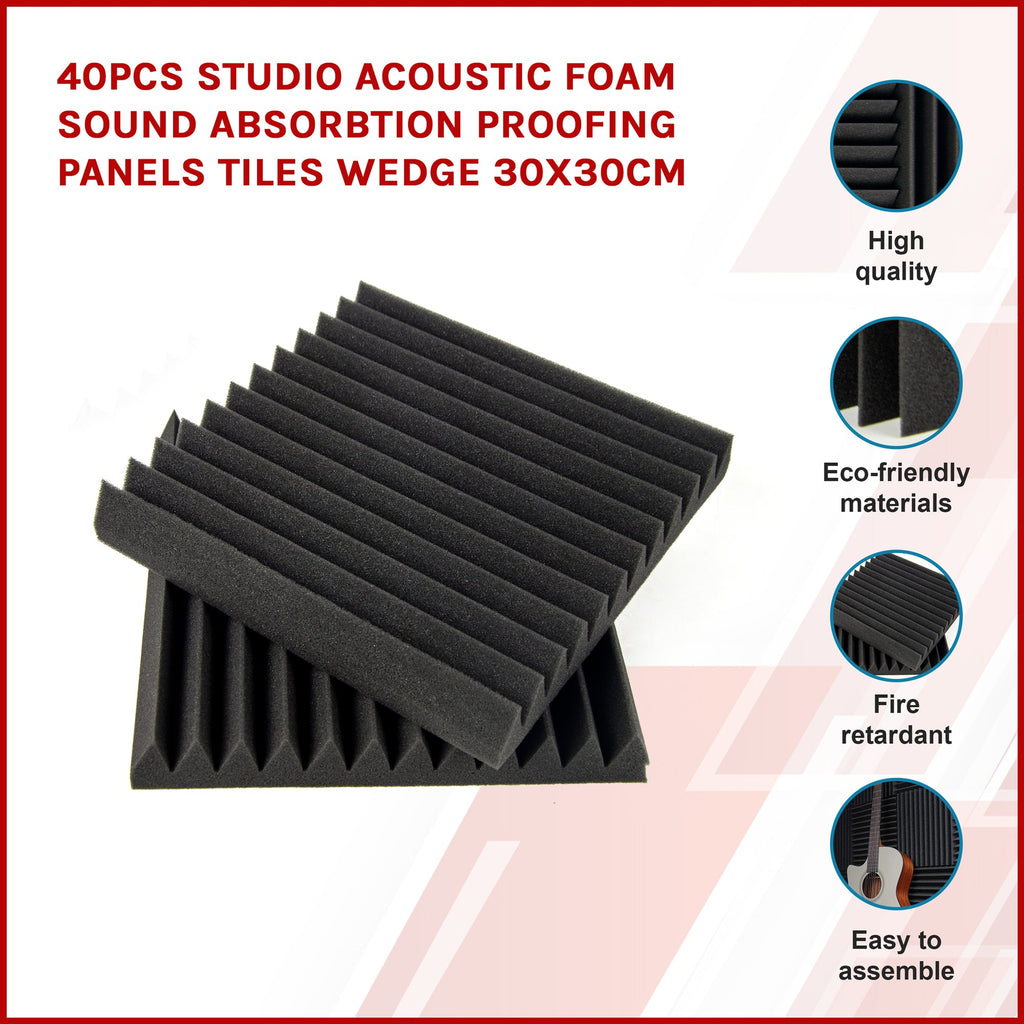 40Pcs Studio Acoustic Foam Sound Absorbtion Proofing Panels Tiles Wedge 30X30cm Soundrproofing Panels