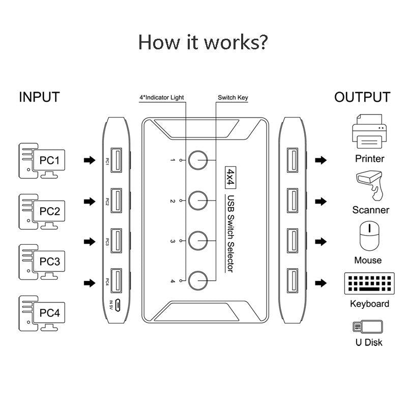 • 1 × 4-Port Usb 3.0 Printer Switcher Hub