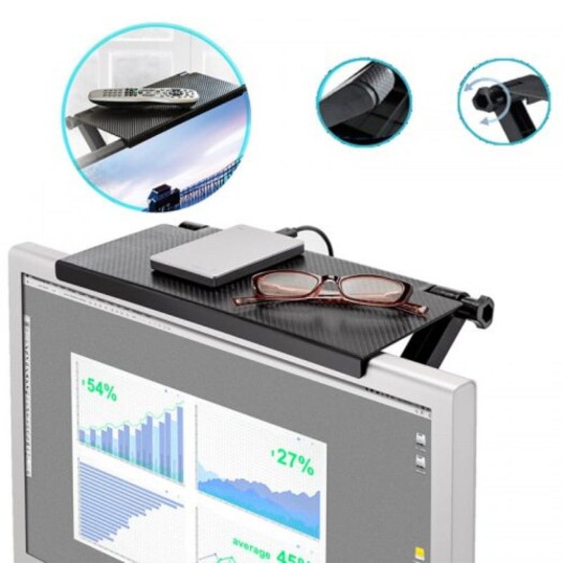 Each Screen Shelf Is Black The Same Shade As Most Flat-Screen Televisions And Desktop Computer Monitors So It's Unlikely That The Look Of Your Shelf Will Clash With The Look Of Any Of These.Br>Non-Slip Surface: The Surface Of Each Of These Shelves Is Of A Non-Slip Nature Which Means That You Won't Need To Be Extremely Concerned About Objects That You Place On Your Shelf Falling Off.Br>Folds Flat For Storage: If At Any Point You're Not Using Your Screen Shelf At All You'll Be Able To Fold It Flat For Storage Purposes. The Legs Will Fold In And Leave You With Just A Flat Tray-Like Device That You'll Be Able To Slide Under A Couch Or An Easy Chair Until You Need It Again. This Shelf's Ability To Fold Flat Will Also Come In Handy If You Need To Transport The Shelf To A Different Location But Are Lacking A Ton Of Vehicle Space.