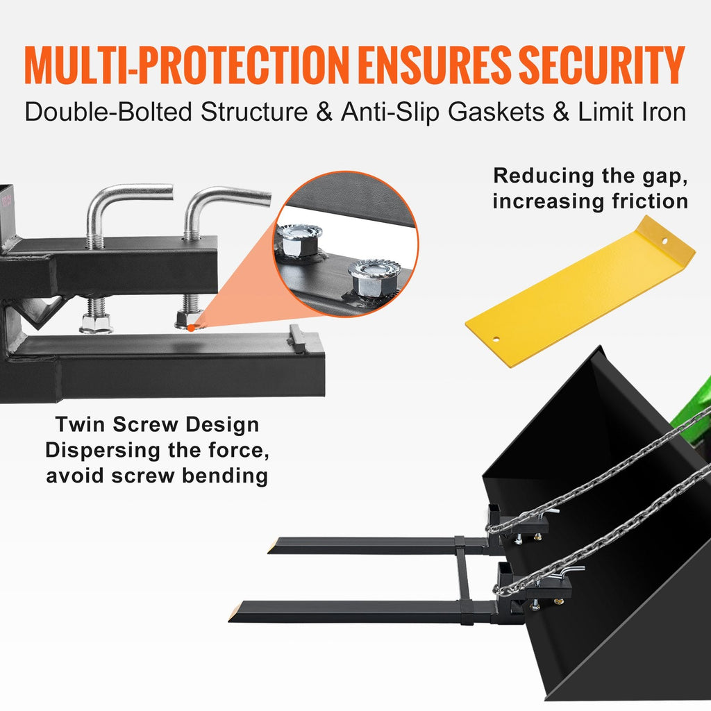 With Reinforced Bolts And Grooved Screw Heads Our Clamp On Pallet Fork Is Built To Last.