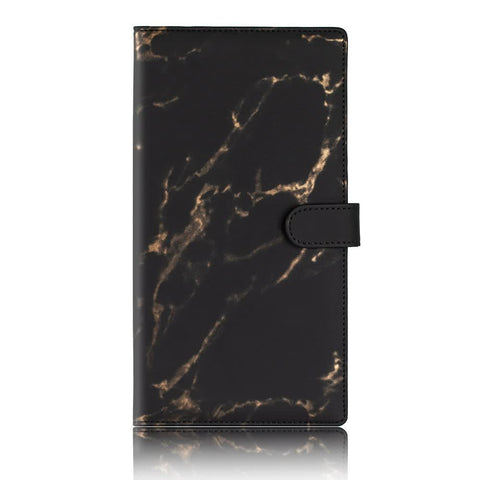 Black Genuine Leather Pencil Case Vintage Zip Up Holder With Elastic Loops Pencil Cases