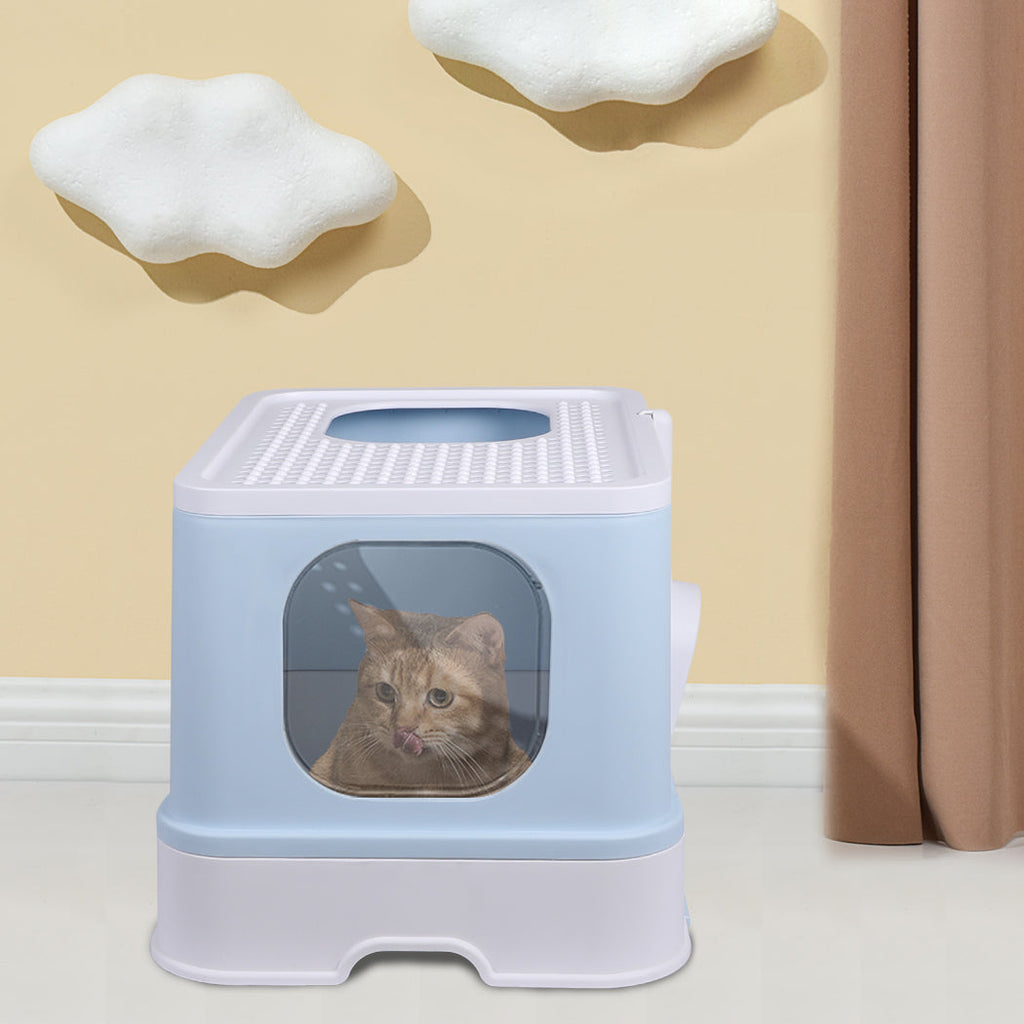 Pawz Cat Litter Box Fully Enclosed Kitty Blue Litter Trays
