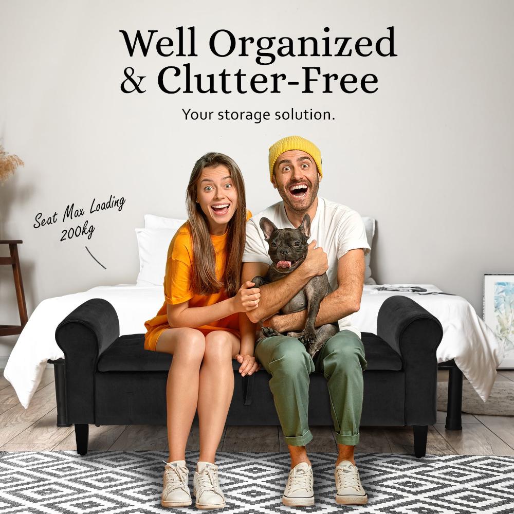 La Bella Storage Stool Arm Bench Seat 132Cm Velvet Black Ottomans Footstools & Poufs