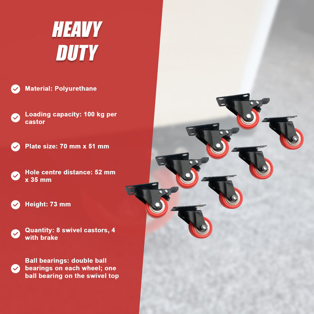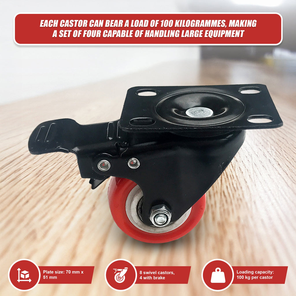 • 8 X 2" Polyurethane Swivel Castor Wheels (4 With Brakes)