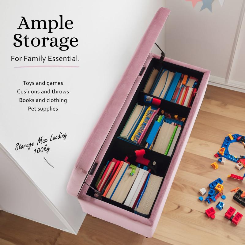 La Bella Storage Ottoman Stool Bench Seat 110Cm Velvet Pink Ottomans Footstools & Poufs