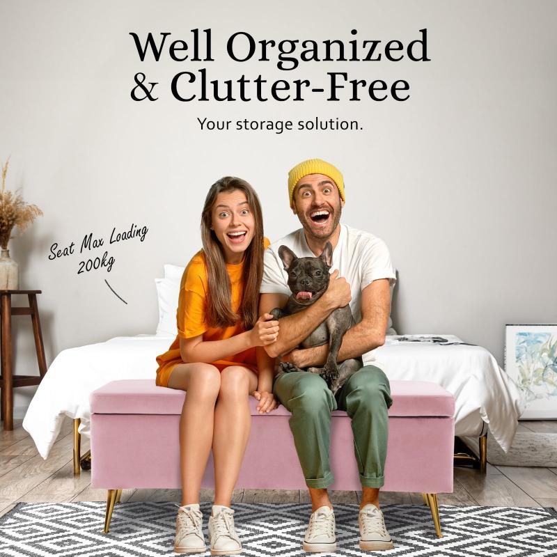 La Bella Storage Ottoman Bench Seat 110Cm Chest Couch Stool Velvet - Pink