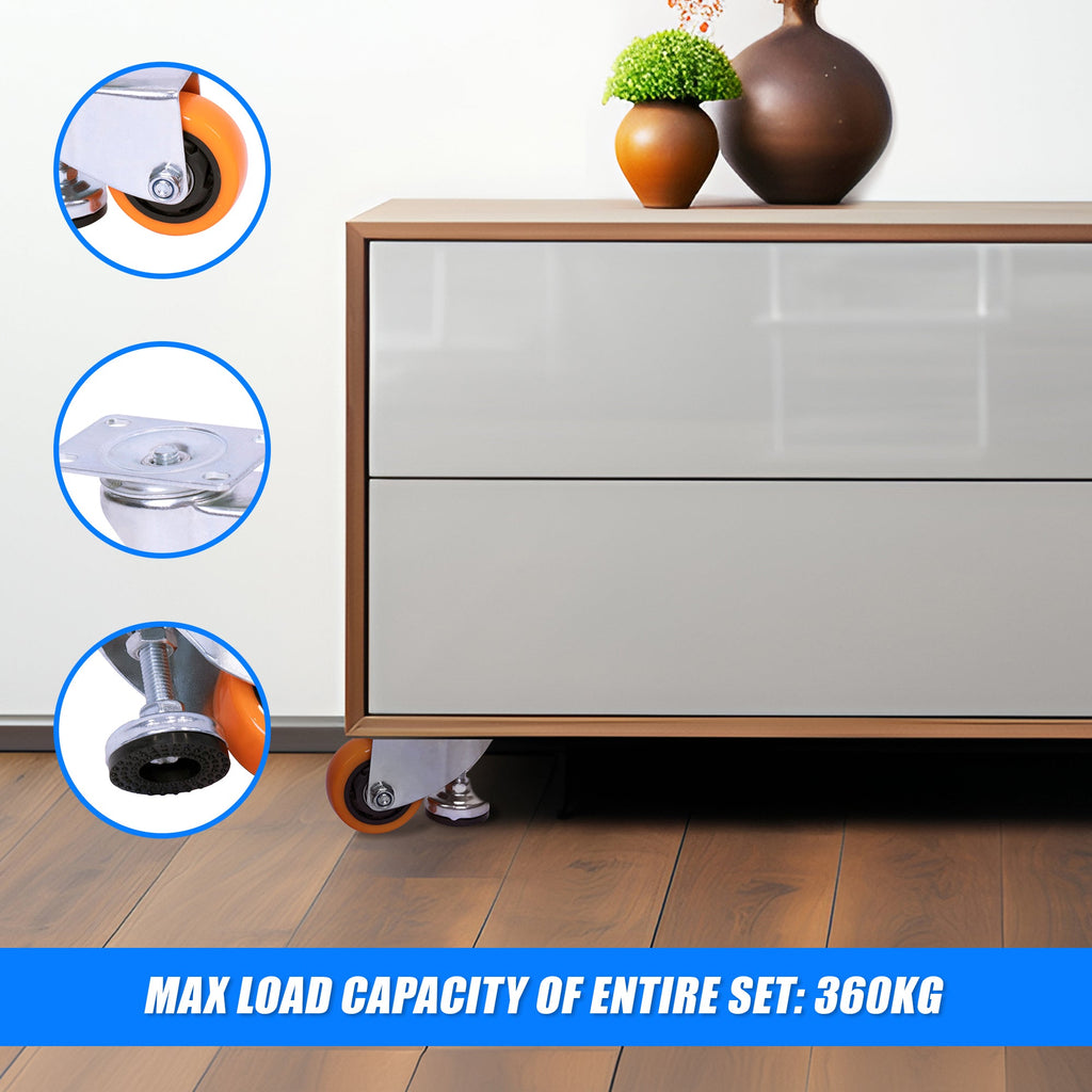 Leveling Casters Swivel Wheels Set of 4 360 kg Total Load Capacity