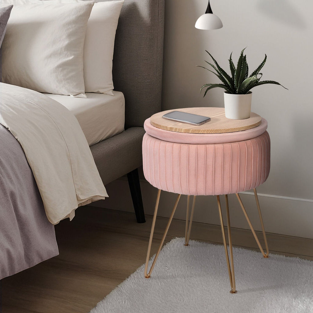 Side Table Storage Ottoman Velvet Padded Stool Vanity Footstool Remy Pink Ottomans Footstools & Poufs