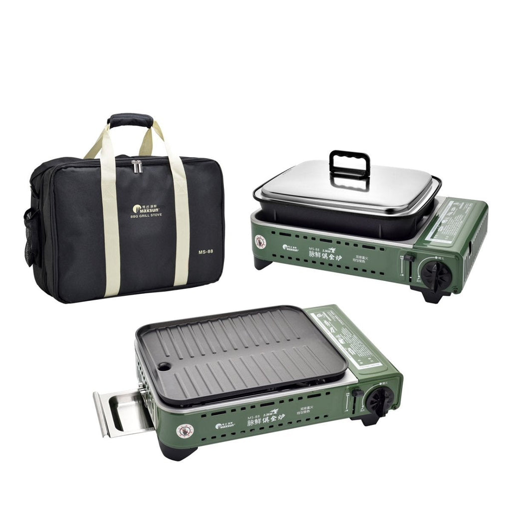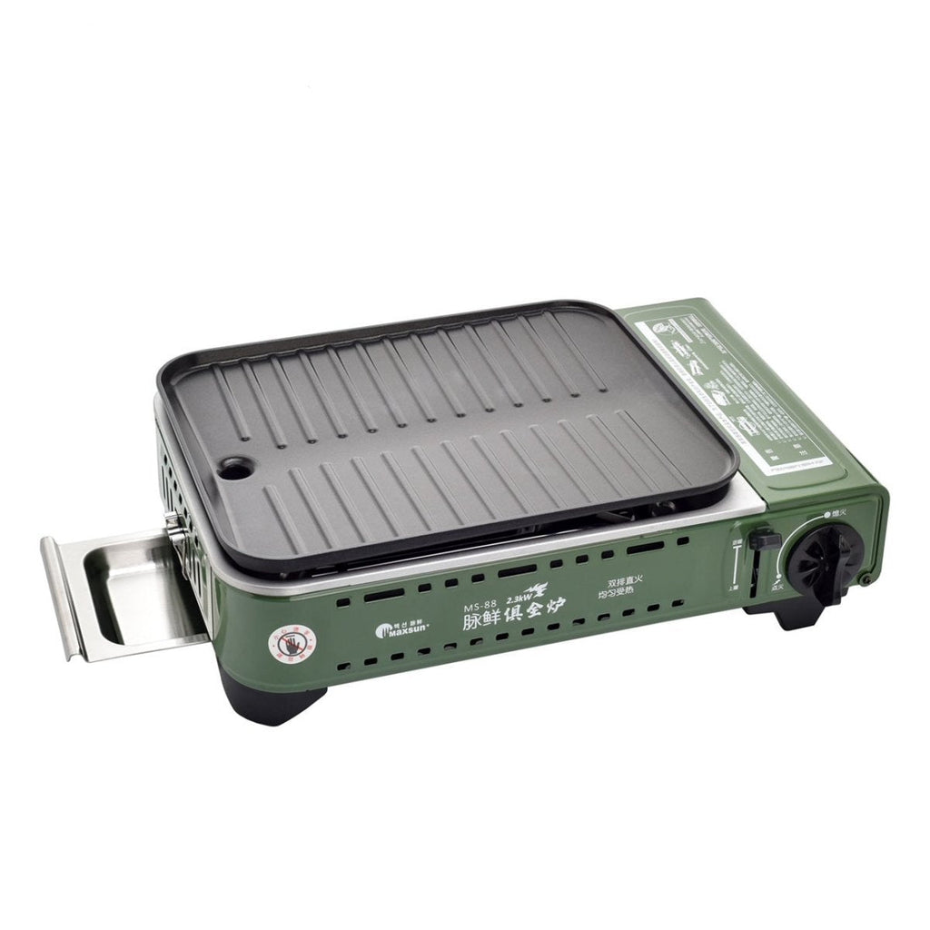 Gas Bbq Stove Pro Grill Plate Burner Butane Camping Cooker With Non Stick Pan And Lid Camping Stoves