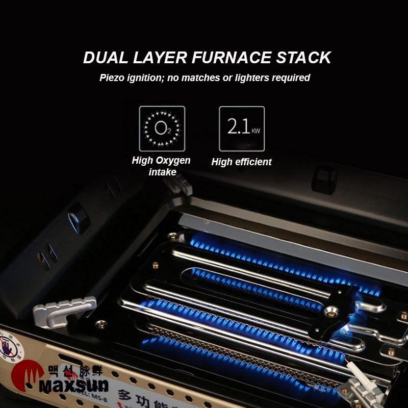 SpecificationBr>Model No. Ms-8Br>Brand Name: Maxsun (Korean Gas Product Company)Br>Ignition Method: Piezo-Electricbr>Product Dimensions: 460Mm(W) X 335Mm(D) X 168Mm (H)Br>60Mm Pan Package Dimensions: 482Mm X 335Mm X 129Mmbr>Weight: 4.5Kgbr>Nominal Gas Consumption: 150G/H (7.5Mj/Hr)Br>Injection Size: 0.6Mm