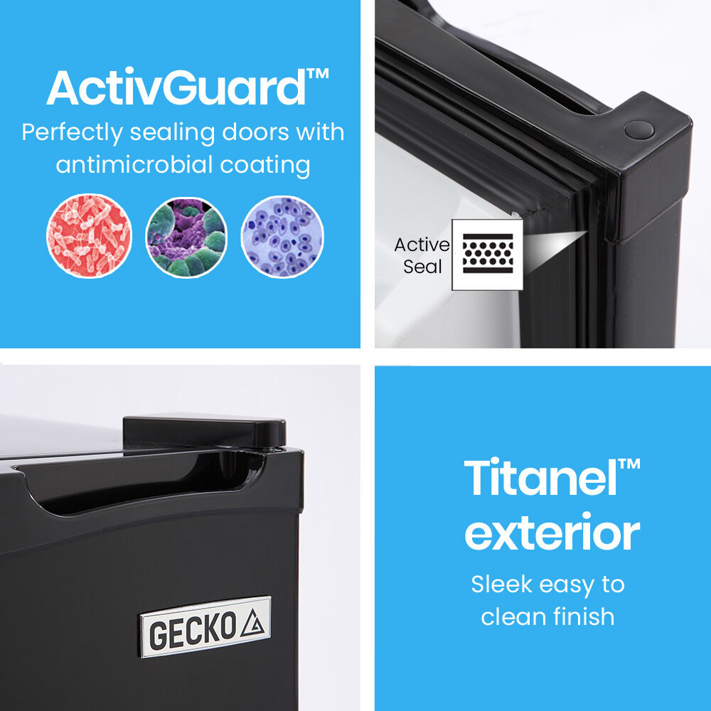 The Gecko Camping Fridge Freezer is designed to perform in harsh Australian conditions with quality compressor technology and thick insulation for fast cooling and operation in ambient temperatures of up to 38 degrees! The Gecko range features ActivSealTM technology which consists of perfectly sealing doors with an anti-microbial coating to inhibit the growth of germs. The Gecko also has flush recessed handles a great feature for confined spaces. All this is wrapped in a sleek TitanelTM metal finish ensuring it will look right at home anywhere!