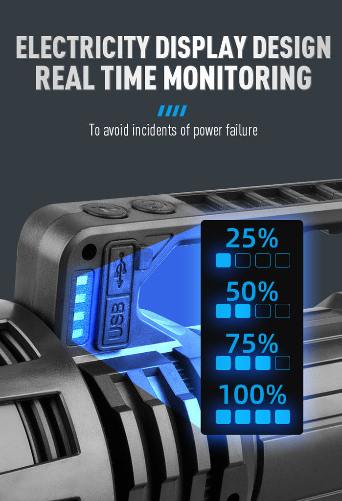 Conquer The Darkness With This High-Performance Led Searchlight. Designed For Maximum Illumination And Long-Lasting Performance This Rechargeable Handheld Spotlight Delivers A Super-Bright 800-Lumen Beam With A Range Exceeding 500 Meters. Whether You're Exploring The Outdoors Working On A Project Or Facing An Emergency This Searchlight Is Your Reliable Source Of Light.