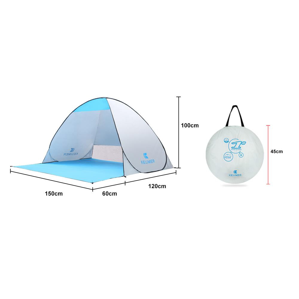 - Extremely Easy And Swift To Pop It Up Just Throw It Into The Sky And It Will Open Automatically.Comes In A Convenient Handled Carry Bag For Compact Storage And Easy Transport.Tent Pegs And Pouches For Holding Sand For Fixing Under Windy Conditions.Special Silver Coated 190T Polyester Fabric Water-Resistant And Uv-Resistant.Durable Useful Tent For Fishing Picnic Or Having Beach Fun.
