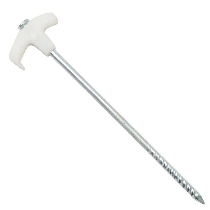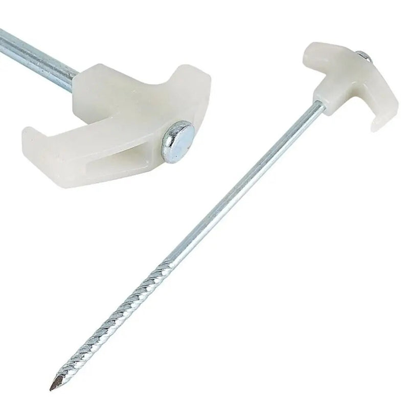 1 x 15 Pieces Pegs Screwin Tent Camping Stakes Outdoor Camping Essentials| Product Description | These heavy-duty stakes can be used to secure ordinary outdoor travel tents. They are made of high-quality metal which is rust-proof strong and won't bend. Whether it's grass hard soil gravel or anything in between it holds securely. These threaded tent stakes have sharp tips that are easy to insert into hard soil. The spiral design provides a stronger grip. With the help of a cordless drill or impact driver these tent spikes will drive into the ground in seconds. The metal stakes provide enough strength in windy conditions and are suitable for outdoor settings. They are important for caring for your outdoor equipment; including sharp items it is recommended to wear tool gloves and to avoid injury please keep them away from children. |