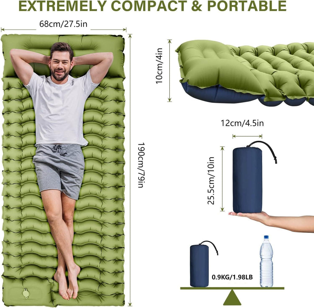 Sleep Soundly Under The Stars With This Ultra-Light Inflatable Camping Pad. Designed For Outdoor Comfort It Features A Built-In Foot Pump For Quick Inflation Durable Waterproof Construction And A Compact Foldable Design Perfect For Backpacking Hiking Or Festivals.