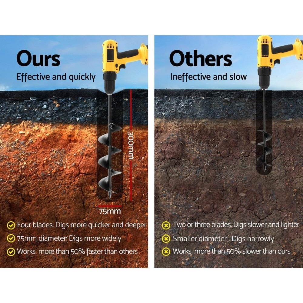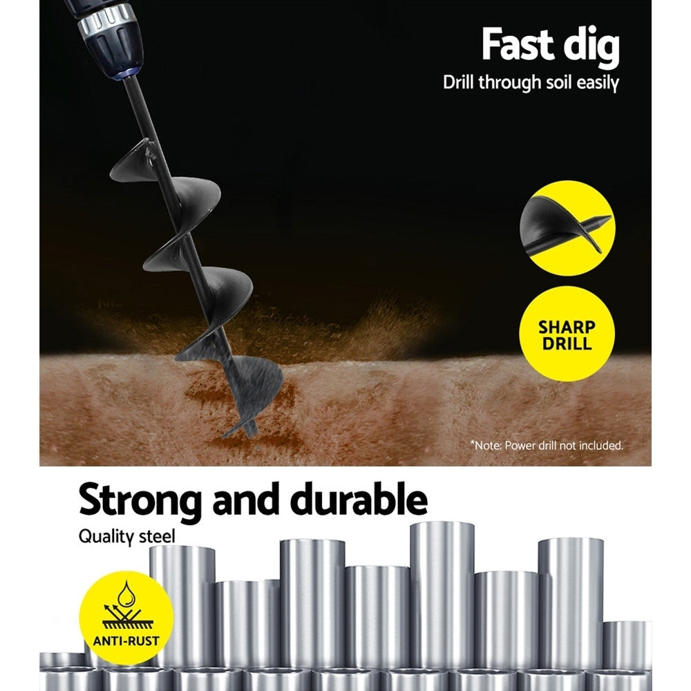 For past preparation of planting groundwork nothing beats the Giantz Power Auger to complement your power digging. The is made of heavy-duty steel for durability and strength and will not easily succumb to tough handling and drilling. It can dig up to 30cm deep depending on the model with a 7.5cm diameter hole and is compatible for use with most power drills. It will fit into a 13mm chuck perfectly. It can used in most ground surfaces including solid clay gravel soil sand and shale soil.