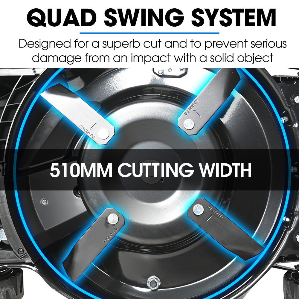 Navigate Any Terrain Smoothly With Oversized Wheels And Premium Bearings While The Heavy-Duty 4-Blade System Ensures A Precise 20-Inch Cut. The Generous 60L Catcher Means Fewer Stops And More Continuous Mowing.