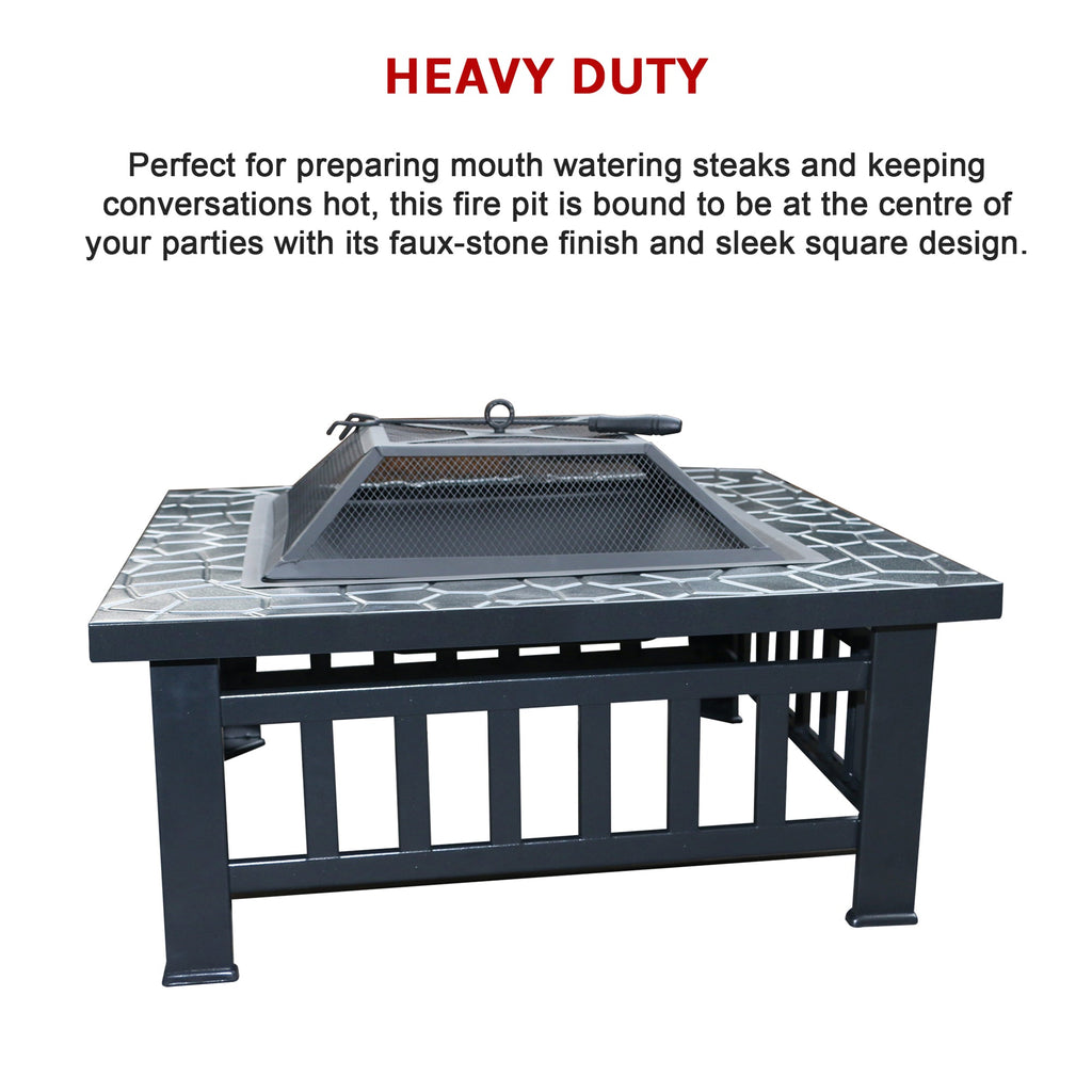 P>P>This Attractive Square Fire Pit Is A Must For Any Backyard Or Patio. You'll Draw A Crowd When You Throw On Mouth-Watering Steaks And Delicious Kabobs On This Metal Fire Pit. Your Gatherings Will Be A HitP>