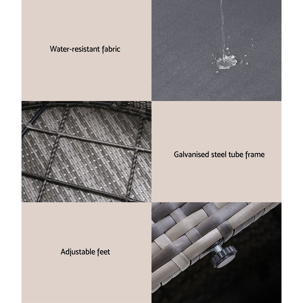 Gardeon Sun Lounge Setting Wicker Lounger Day Bed Patio Outdoor Furniture Grey Loungers