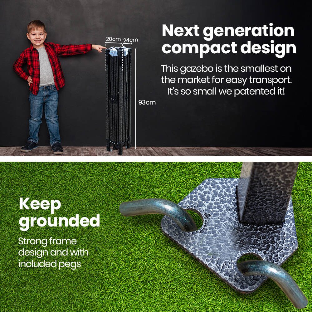 The Red Track 3.6 X 2.2M Gazebo Stands Out With The Smallest Folded Size On The Marketa€”Just 93Cm Long! This Ultra-Compact 12Kg Design Makes It Incredibly Easy For One Person To Carry Transport And Store Offering Unmatched Convenience Compared To Bulkier Alternatives. Whether You're Short On Space Or Always On The Move This Gazeboa€™S Design Ensures Portability Without Compromise.