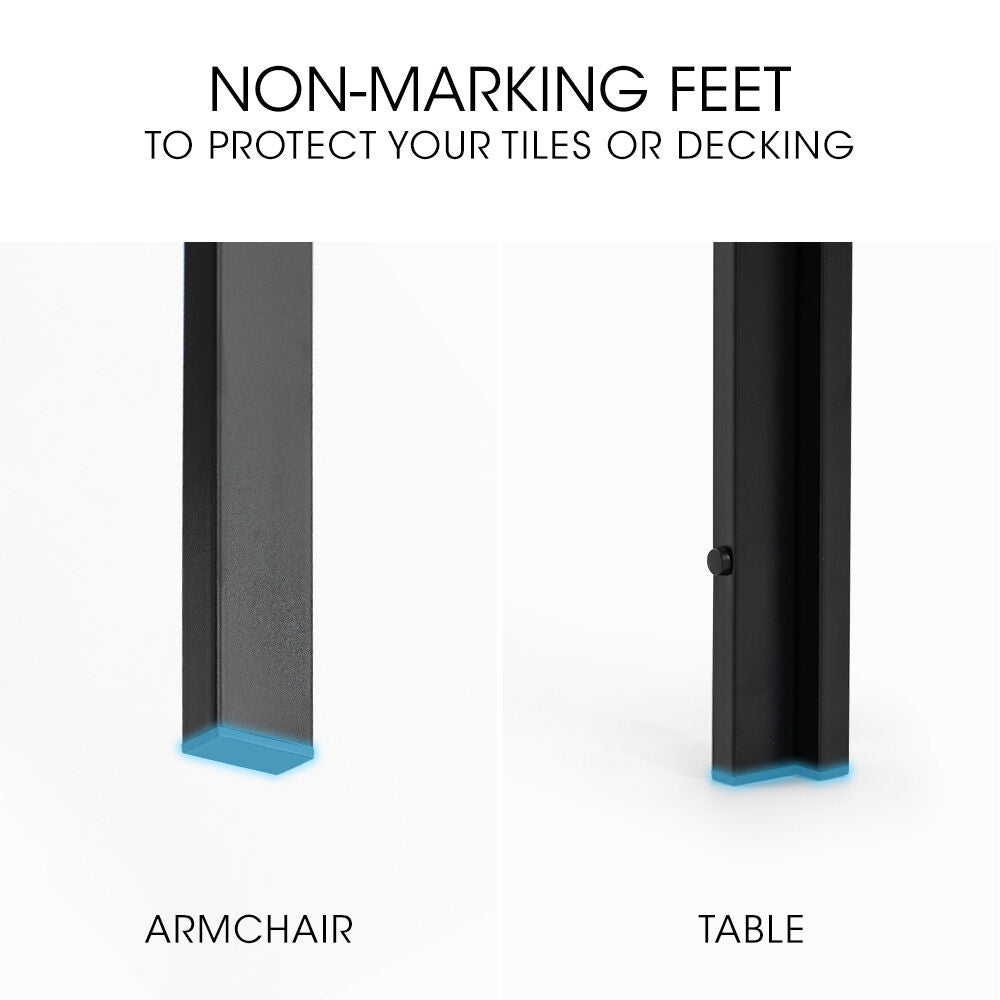 Designed For Warm Climates The Set Features Breathable Mesh Fabric And A Premium Polywood Tabletop Ensuring Durability Fade Resistance And Without The Need For Any Upkeep. The Fortia 7-Piece Setting Has A Strong Stylish Rust-Resistant Powder-Coated Frame And Non-Marking Feet To Protect Surfaces Like Tiles Or Decking.