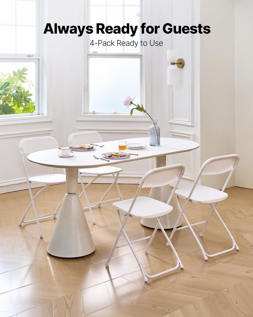 Vevor 4 Pack Folding Chairs Foldable Plastic With Heavy Duty Metal Frame Portable Card Table Stackable Indoor Outdoor Seats For Home Yard Garden Parti