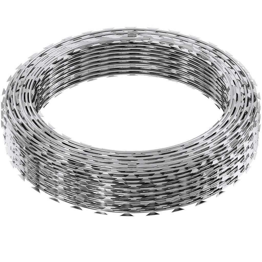 Meta> Meta> Title>Product Features Div> Div> H3>High-Quality Hot-Dip Galvanized P>The Top-Quality Hot-Dip Galvanized Razor Wires Ensures High Strength Excellent Corrosion Resistance And A Longer Lifespan. It Can Withstand Harsh Weather Conditions Throughout The Year. /Div> Div> H3>Sharp Razor Blades P>Upgraded With Razor Blades Measuring 0.02" In Thickness And 0.98" In Width Our Razor Barbed Wire Provides Superior Protection. The Longer And Sharper Blades With Double-Spiral Design Increases Security And Preventing Intrusions Effectively. /Div> Div> H3>Thick Core Wire P>We Use 0.16" Thick Core Wire Which Is Sturdier And More Flexible Compared To Commonly Used Thinner Core Wires. It Is Less Likely To Break Or Bend During Installation. /Div> Div> H3>147 Ft Coverage P>Our Razor Fence Comes In 3 Rolls Offering A Total Coverage Of Up To 147 Ft. Each Roll Has A Diameter Of Approximately 19" With Around 63 Coils Per Roll. It Easily Meets Your Security Needs. Please Check Local Regulations And Obtain The Necessary Permits Before Installation. /Div> Div> H3>Safe Installation P>To Ensure Your Safety During Installation We Provide A Pair Of Protective Gloves. You Won't Have To Worry About Getting Cut By The Blades. It Is Essential To Wear These Gloves During The Installation Process. /Div> /Div> /Body>