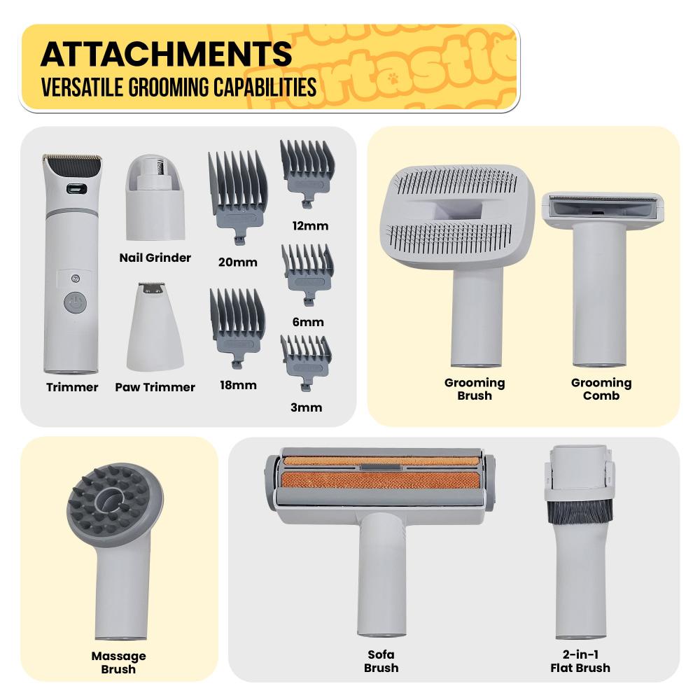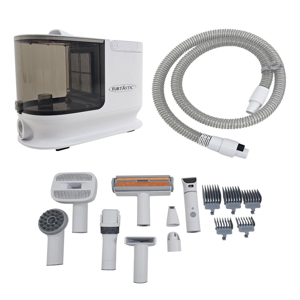The Furtastic Pet Vacuum Is The Ultimate Grooming Solution For Your Furry Companions! This All-In-One Grooming Kit Is A Powerhouse With 8 Major Function Attachments: A Large Trimmer Paw Trimmer Grooming Brush Grooming Comb Nail Grinder Massage Brush Sofa Brush And Crevice Brush. It Lets You Trim And Vacuum At The Same Time So That Each Grooming Session Is Easy And Mess-Free.