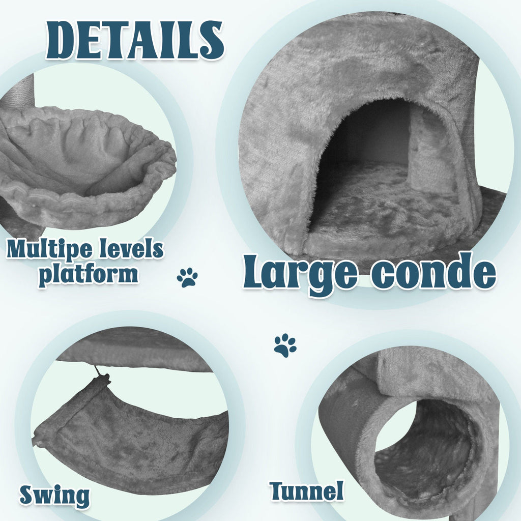 Grey Cat Tree Tower Condo Scratching Post Bed Stand 1.4M Furniture & Scratchers