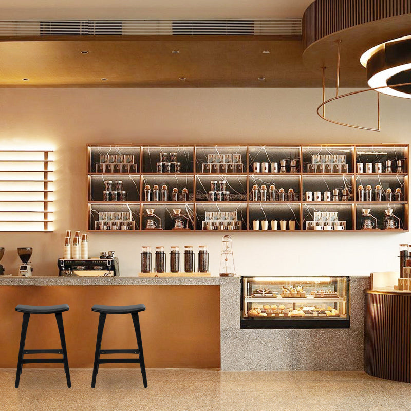 4X Bar Stool Padded Pu Leather Dining Chair Kanso 65Cm Black Benches Bar Stools
