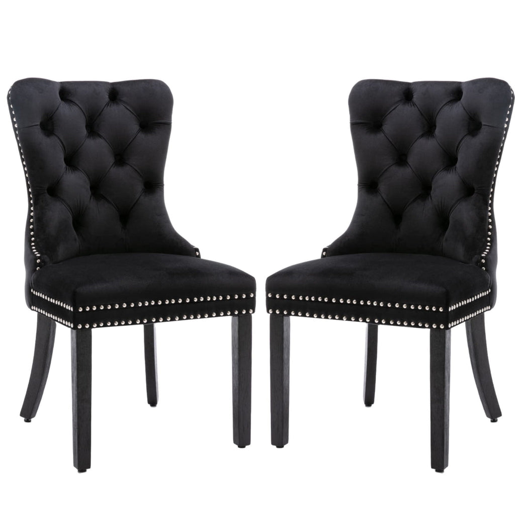 4X Velvet Upholstered Tufted Kithcen With Solid Wood Legs Stud Trim And Ring Black Dining Chairs