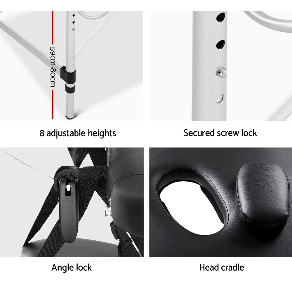 Zenses 70Cm Wide Portable Aluminium Massage Table 3 Fold Treatment Beauty Therapy Black Massage Tables & Chairs