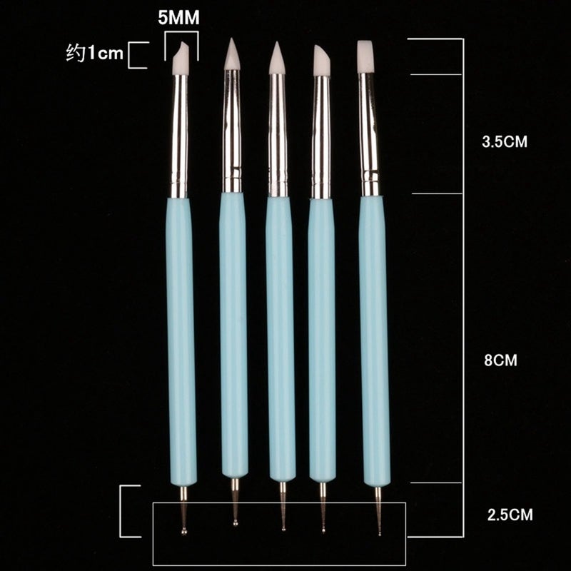 5Pcsset Double Ended Dotting Tools Set Nail Art Embossing Pottery Craft Silicone Brushes Clay Nail Art Tools