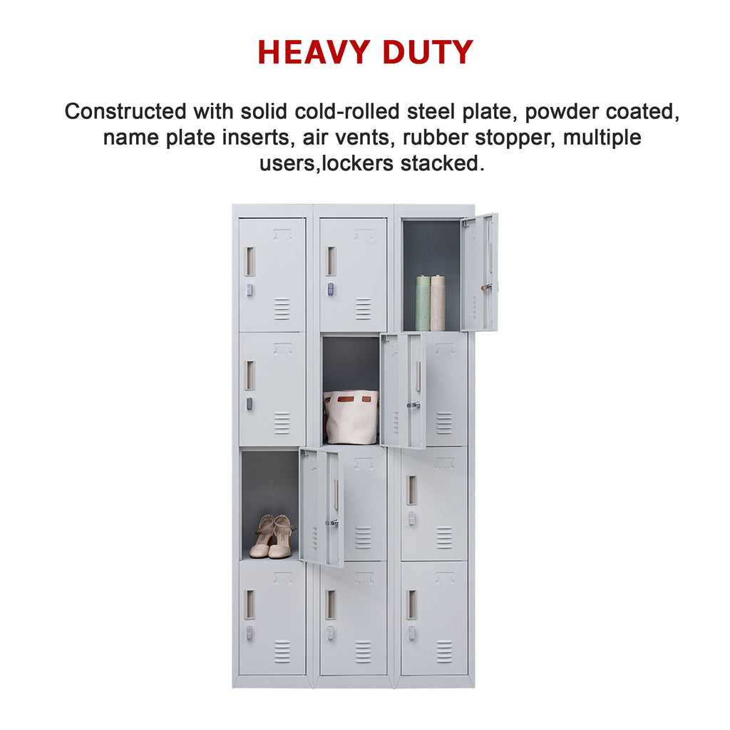 12-Door Locker For Office Gym Shed School Home Storage - Padlock-Operated