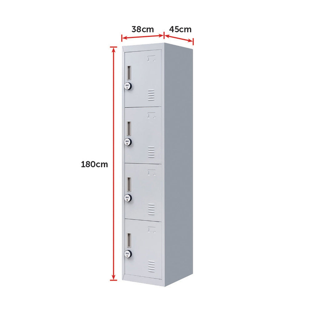 Four Vertically-Stacked Lockers Provide A Good Amount Of Room For Small Personal Belongings Purses Textbooks Office Supplies And Much More. This Comes Comes With 4-Digit Combination Lock To Ensure Safety Of Your Items.
