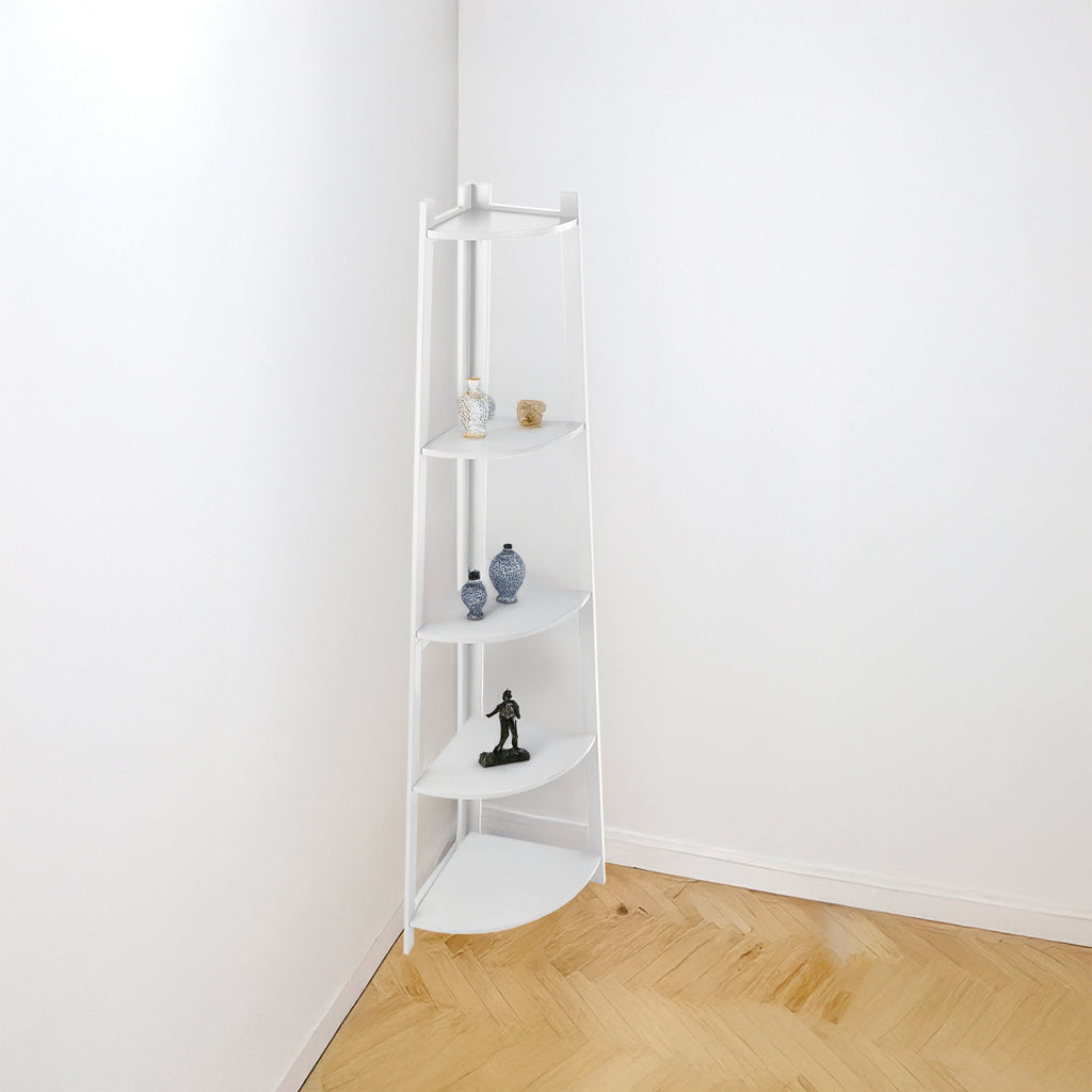 If You Love The Clean No-Fuss Lines Of Modern Design This Corner Shelf By Randy Travis Machinery Is A Must-Have. Finished In Classic White It Transforms Unused Corners Into Stylish Focal Points Perfectly Showcasing Books Collectables And Plants In An Elegant And Organized Display. Its Unique Triangular Frame Tapers To The Top While The Semi-Circular Shelves Add A Soft Contrast Creating A Balanced And Contemporary Look.