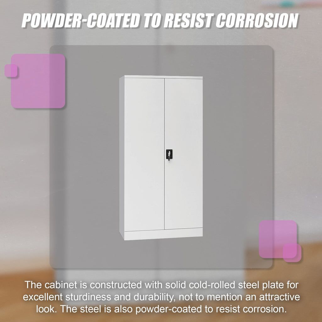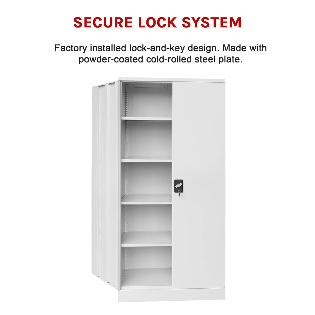 - Lockable Double-Door Cabinet With 5 Shelves For Flexible Storage