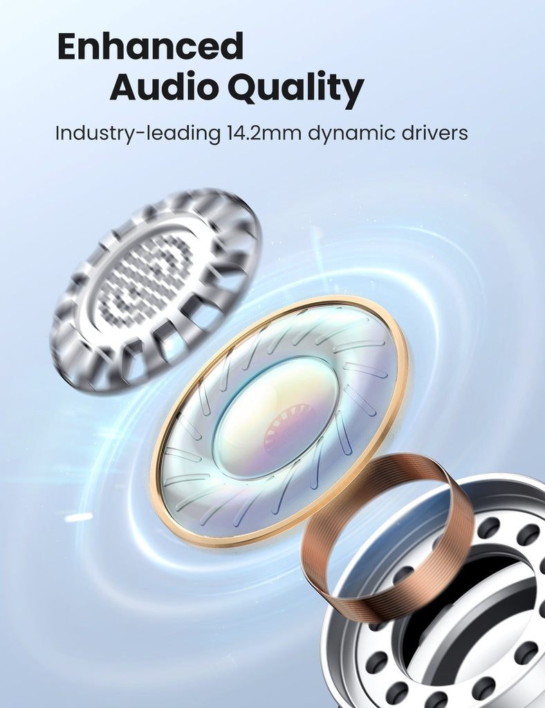 The ergonomic design greatly disperses pressure and ensures comfortable wearing. And each earbud only weighs 0.19oz which is super lightweight and you can barely notice them.