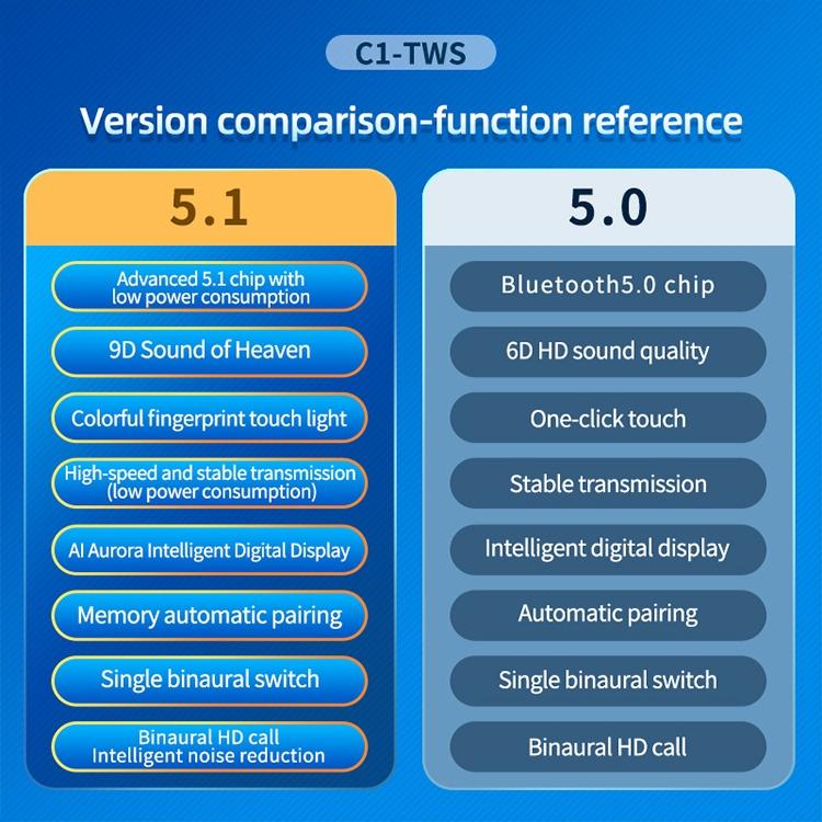 • 1 X C1 Tws Touch Digital Display True Wireless Bluetooth 5.0 Earphones With Charging Box – Blue