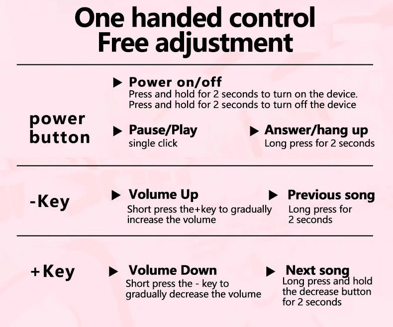 • Power Button: Press And Hold For 2 Seconds To Turn On/Off. Single Click For Pause/Play. Long Press For 2 Seconds To Answer/Hang Up Calls.