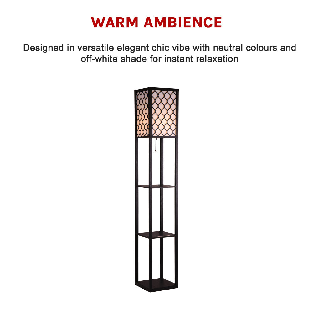 Contemporary Elegance Will Be Yours When You Accent Your Room With This 1.6-Metre Floor Lamp From Palermo. Its Versatile Design And Neutral Colours Pair Well With Almost Any Style Room While Its Off-White Shade Provides A Warm Glow For Instant Relaxation. Crafted From Authentic Wood The Frame And Shelves Bring Nature Inside Your Home.