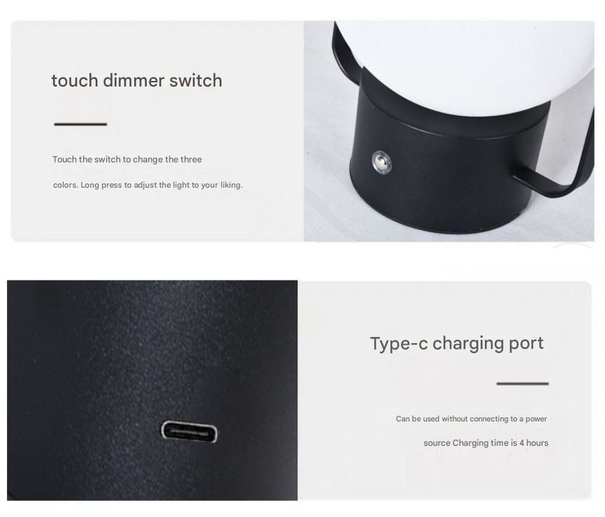White Rechargeable Led Lantern Lamp Touch Control 3 Color Dimmable Desk Light Lamps