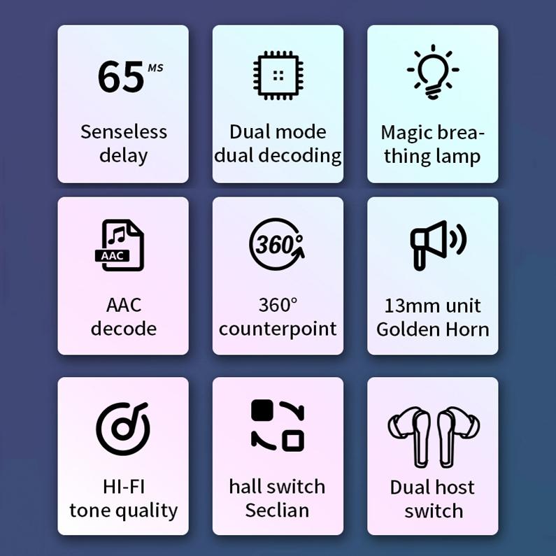 A€¢ 1 X N35 Tws Colourful Light In-Ear Low Latency Wireless Bluetooth Game Earphones