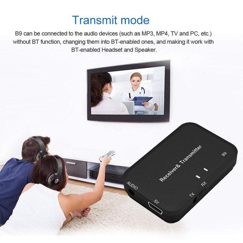 B9 Is A 2 In 1 Bt Transmitter And Receiver. As A Bt Audio Transmitter It Can Be Connected To The Audio Devices Without Bt Function Via The Included 3.5Mm Audio Plug Changing These Audio Devices Into Bt-Enabled Audio Devices And Making It Work With Bt-Enabled Headset And Speaker. As A Bt Audio Receiver B9 Can Change The Traditional Car Stereo Systems And Home Audio System Into Bt-Enabled Ones And Easy To Pair With Bt-Enabled Smartphones Laptops Tablets Etc. With This Product You Can Greatly Enjoy Music From Your Phone Laptop Tablet Without The Hassle Of Cables. This 2 In 1 Bt Transmitter And Receiver Will Give You Much Fun And Convenience.