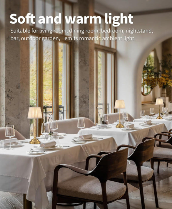 Gold And White Elegant Rechargeable Fabric Shade Led Lamp Cordless Touch Stepless Dimmable Table Light Lamps