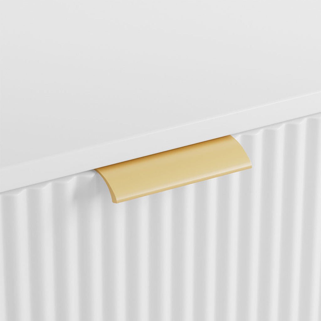 This Modern White Coffee Table Brings An Elegant Touch To Any Living Space. Crafted With A Smooth Board And Accented With Gold Metal Handles And Legs It Exudes A Luxurious Yet Versatile Charm. One Side Features A Spacious Drawer With A Fluted Design Perfect For Storing Essentials While The Other Half Offers An Open Shelf For Easy Access To Decorative Items Or Books. The Table Is Thoughtfully Designed With Rubber Feet Mats To Protect Your Floors From Scratches. Its Clean Sleek Lines Make It A Perfect Addition To Any Contemporary Home.