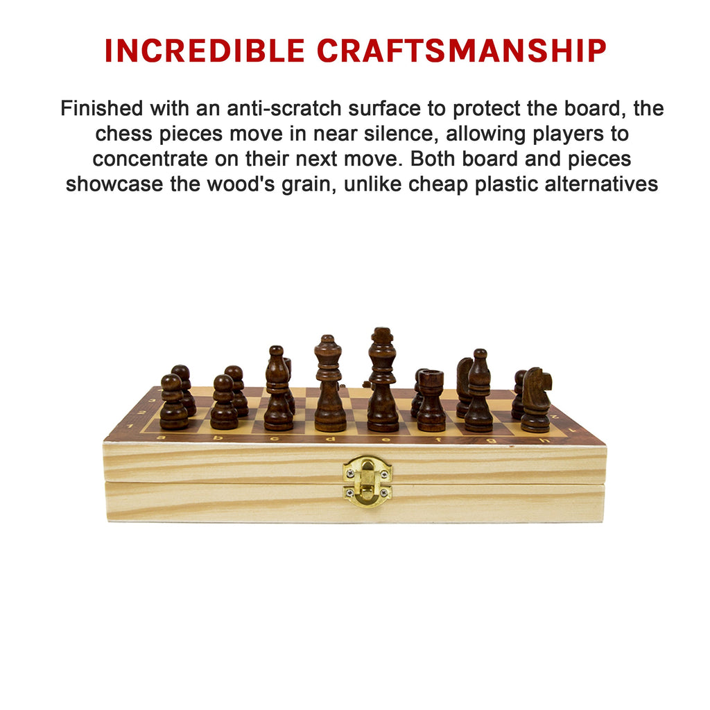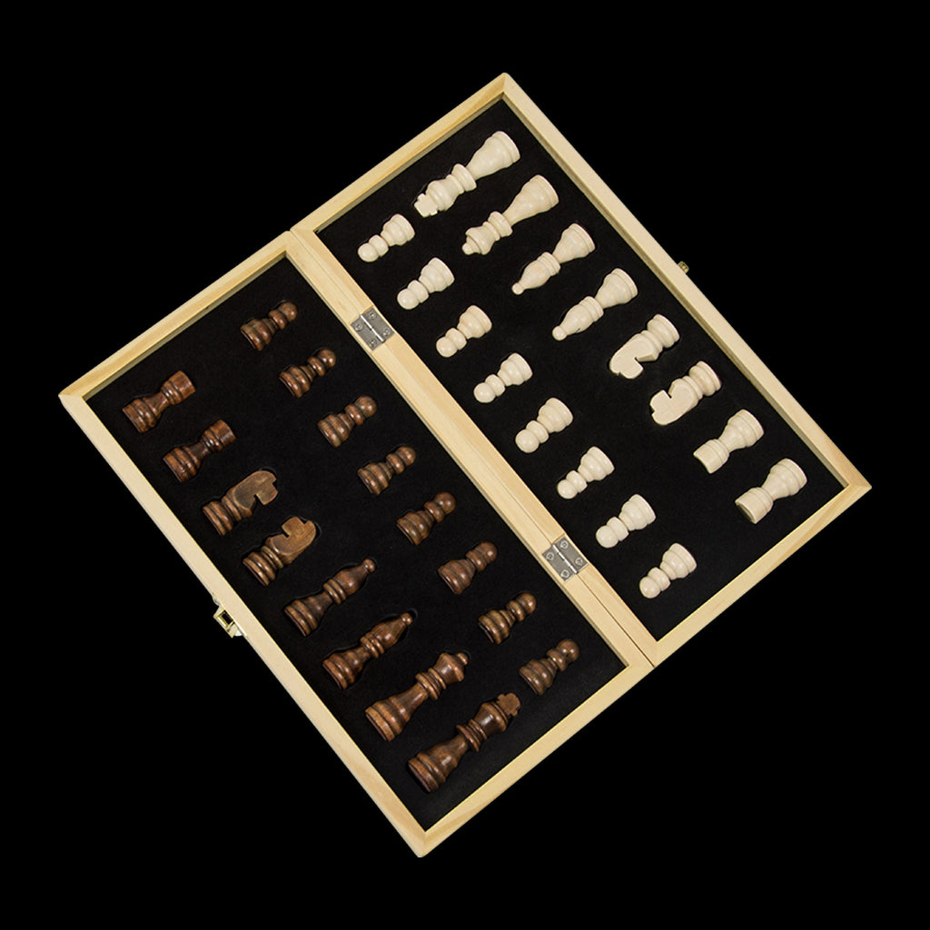 Crafted With Care The Chessboard Features An Anti-Scratch Surface For Lasting Protection While The Smooth Carved Pieces Glide Quietly For Maximum Concentration During Gameplay. Both Board And Pieces Highlight The Natural Wood Grain Adding Elegance That plastic Alternatives Cannot Provide. When The Game Is Over Simply Fold The Board Into A Compact Storage Box Secured With An Elegant Brass-Tone Clasp—Perfect For Travel Or Safekeeping. Whether For Gifting Or Personal Enjoyment This Chess Set Is Designed To Last A Lifetime And Beyond.