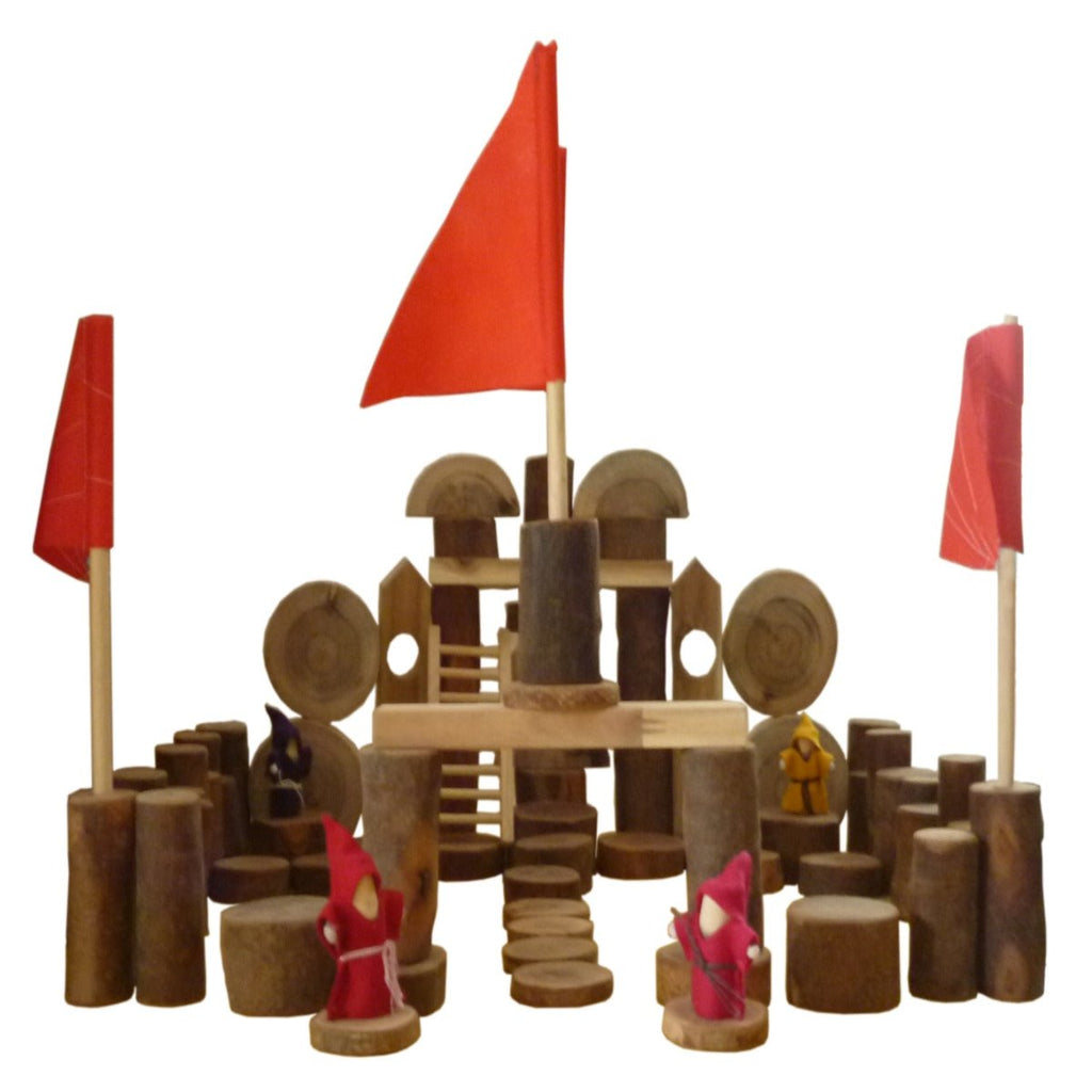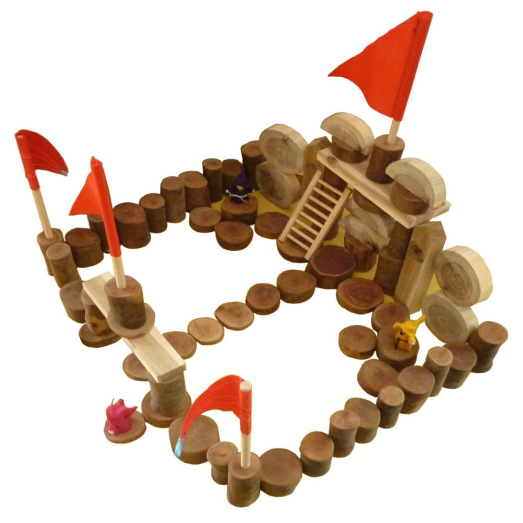 This Set Of Natural Tree Blocks Comprises Of Assorted Natural Tree Blocks Flags And Dolls Ready For Little People To Let Their Imagination Go!